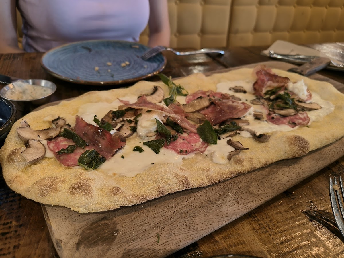 Zizzi - Staines is a spacious yet cozy spot, perfect for any occasion. The restaurant offers both indoor and outdoor seating options, allowing you to enjoy the ambiance in any weather. The vibrant atmosphere makes it an excellent choice for lunch, dinner, or even a late-night bite. Its welcoming vibe is ideal for those dining solo, whether you're working on your laptop or simply enjoying a meal in peace.