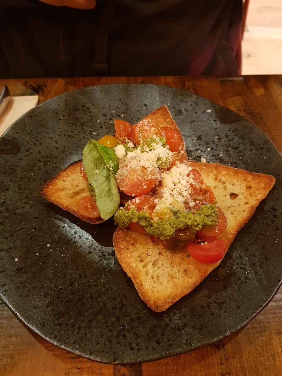 Bruschetta: Toasted bread topped with fresh tomatoes, garlic, and basil - a perfect start to any meal.